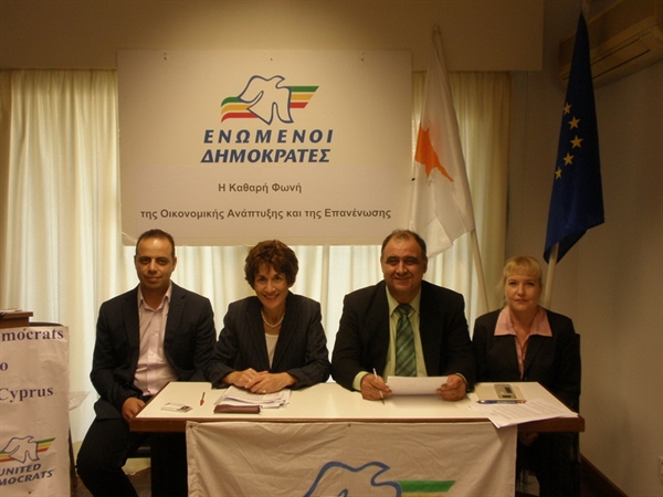 Στο δύσκολο αυτό αγώνα για τη διάσωση της Κύπρου από την τραγικά δύσκολη θέση στην οποία περιήλθε η πατρίδα μας, η υποψηφιότητα της Προέδρου τους που προτείνουν οι Ενωμένοι Δημοκράτες στηρίζεται με εκτίμηση και προσδοκία από την Ευρωπαϊκή πολιτική μας οικογένεια, τους Ευρωπαίους Φιλελευθέρους Δημοκράτες.